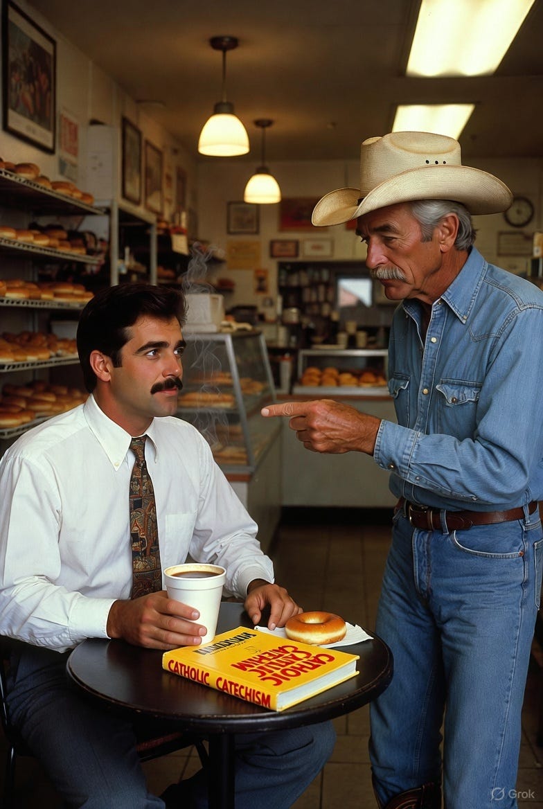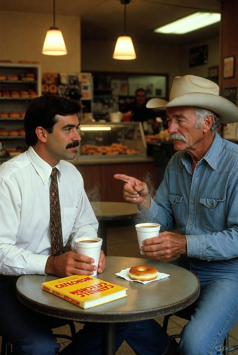BACK AROUND 1990, I walked into a doughnut shop, set a copy of The Catholic Catechism by John A. Hardon, S.J., squarely on a small table, and headed to the counter for coffee and a doughnut. When I turned back, I noticed a slight change in the room. Conversations slowed. A few people glanced at the book, then at me.