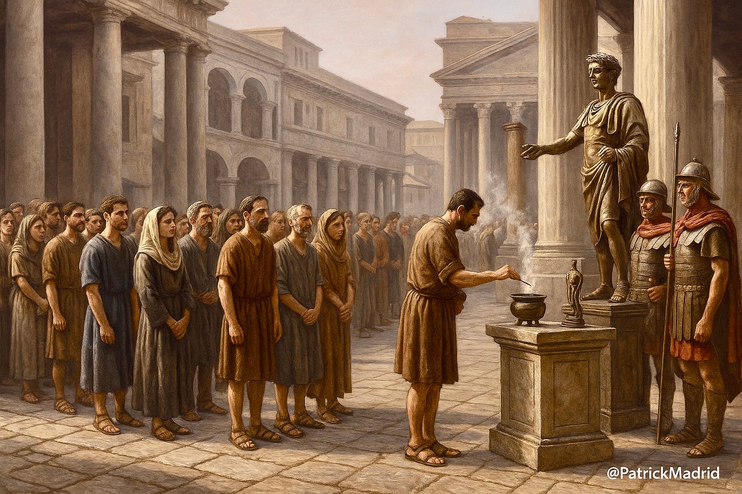 Some faced with such a terrible choice (renounce Christ and live or proclaim their faith in Christ and be killed) certainly tried to rationalize: “I don’t truly believe Caesar is divine. I will only look as if I do.” But the act itself was the lie.”